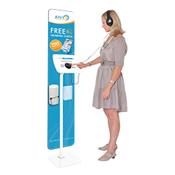 The Touchscreen Hearing Check can be purchased as a floor stand, desktop unit, wall-mounted, or “software only”.