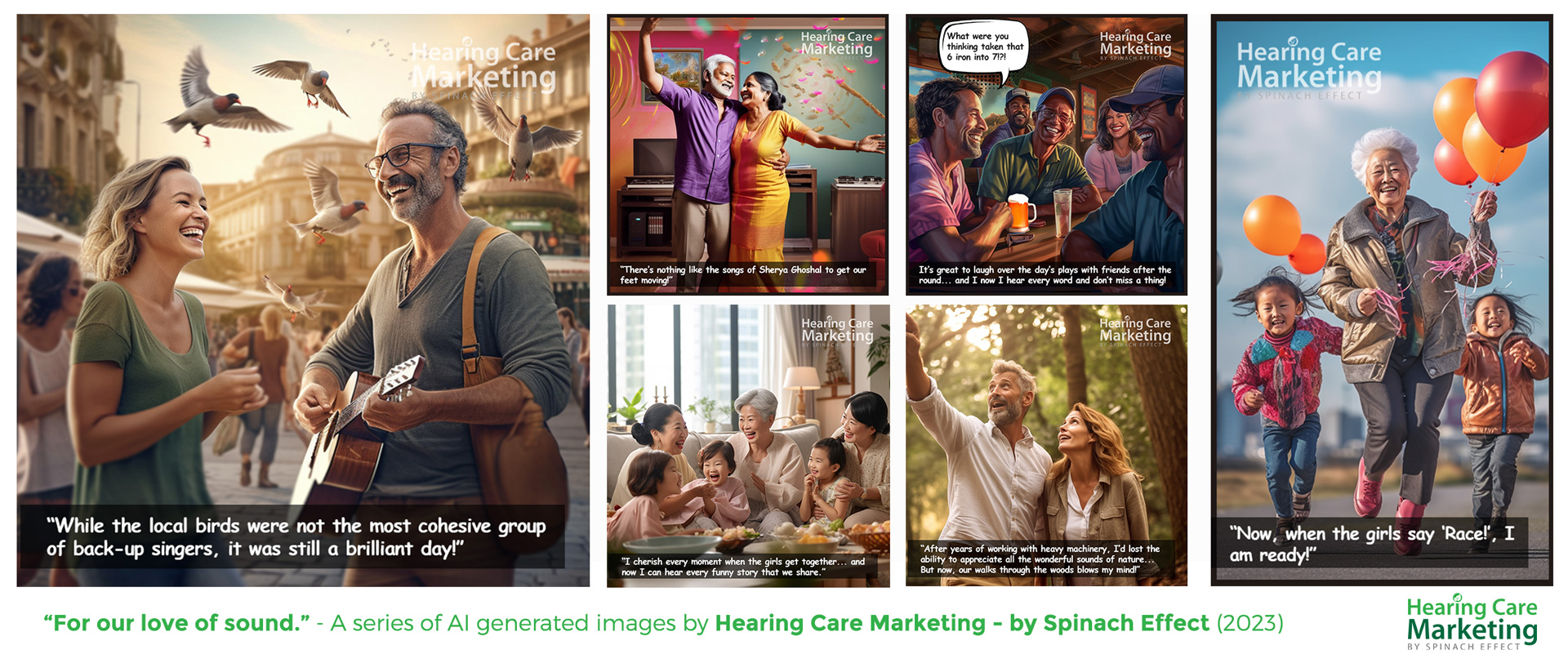 AI can save huge amounts of time and enhance the effectiveness of communicating an idea or concept. Hearing Care Marketing also utilizes AI to create original images for a number of purposes, including: -