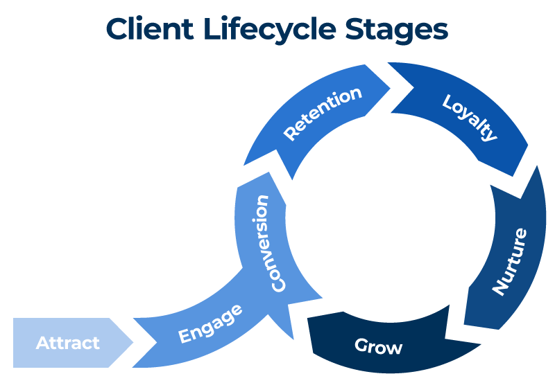 Instead, we must be able to categorise Clients based on who and where they are in the Client Lifecyle. For example:
