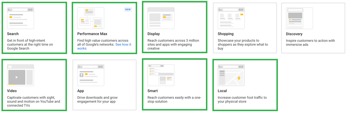 While you may instantly think of Search Engine advertising, this is only one of the nine options available through Google Ads, which include: Search, Display, Shopping Discovery, Video, App, Smart, Local, and Performance Max campaigns.