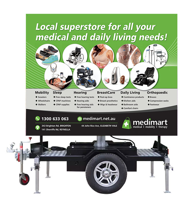 Additionally, we created trailer signs that were driven around Adelaide for a few weeks and, when idle, would be positioned at high-visibility locations in the regions of their stores.