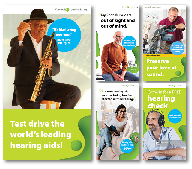 Working within a framework provided by Sonova's global team, we designed a series of "hero" images of people enyoing their world of sound.